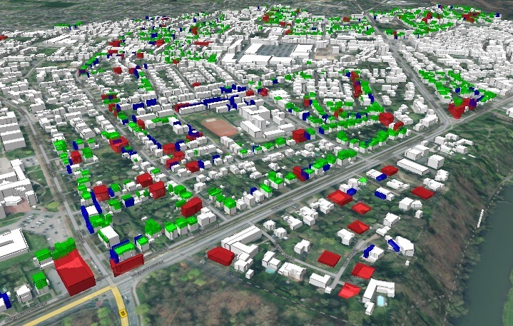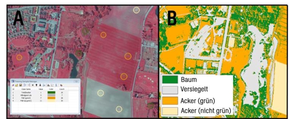 Der Klimawandel ist real und beeinflusst bereits heute unsere Lebensräume. Mithilfe von GIS kann nachhaltiger geplant und gebaut werden. In Städten können Grünflächen und Bäume während Hitzewellen zur Abkühlung beitragen. Mittels GIS lässt sich z. B. die Vegetation anhand von Luftbildern automatisch klassifizieren, um Stadtgebiete zu identifizieren, in denen Nachpflanzungen sinnvoll wären.