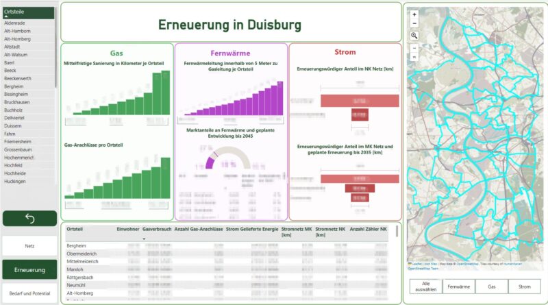 Dashboards für die Nachhaltige Wärmeplanung für Netze Duisburg.