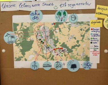 Neben intensiven Arbeitsphasen sorgten die fachlichen Kurzvorstellungen verschiedener Bereiche für ein besseres Verständnis davon, wie viel Potenzial in der geballten Expertise unseres Unternehmens steckt. Insgesamt konnten vier konkrete Modelle für eine Kleinstadt und einen Landkreis entwickelt werden. Diese Modelle zeigen praxisnahe Wege auf, wie regenerative Stadtentwicklung gelingen kann und wie Städte ihre Ressourcen effizienter nutzen, Abfälle minimieren und den ökologischen Fußabdruck reduzieren können.