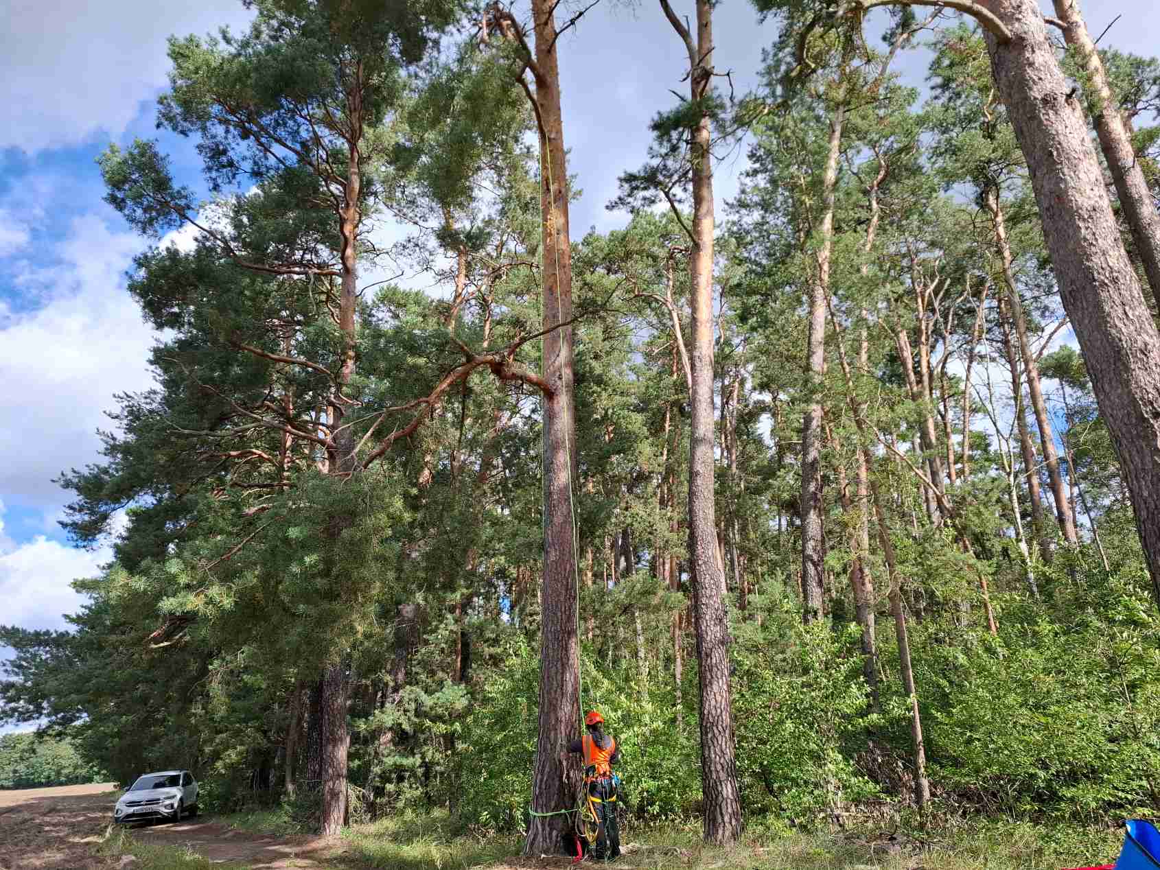 „Ziel ist es, das Seil über einen tragfähigen Ast möglichst nahe am Stamm zu platzieren. Insbesondere in dichten Beständen liegt der Kronenansatz häufig erst in 15 Metern Höhe oder darüber, sodass der erste geeignete Ast nur mit entsprechender Übung erreicht wird“, erzählt Projektmitarbeiter Christoph Baudach.