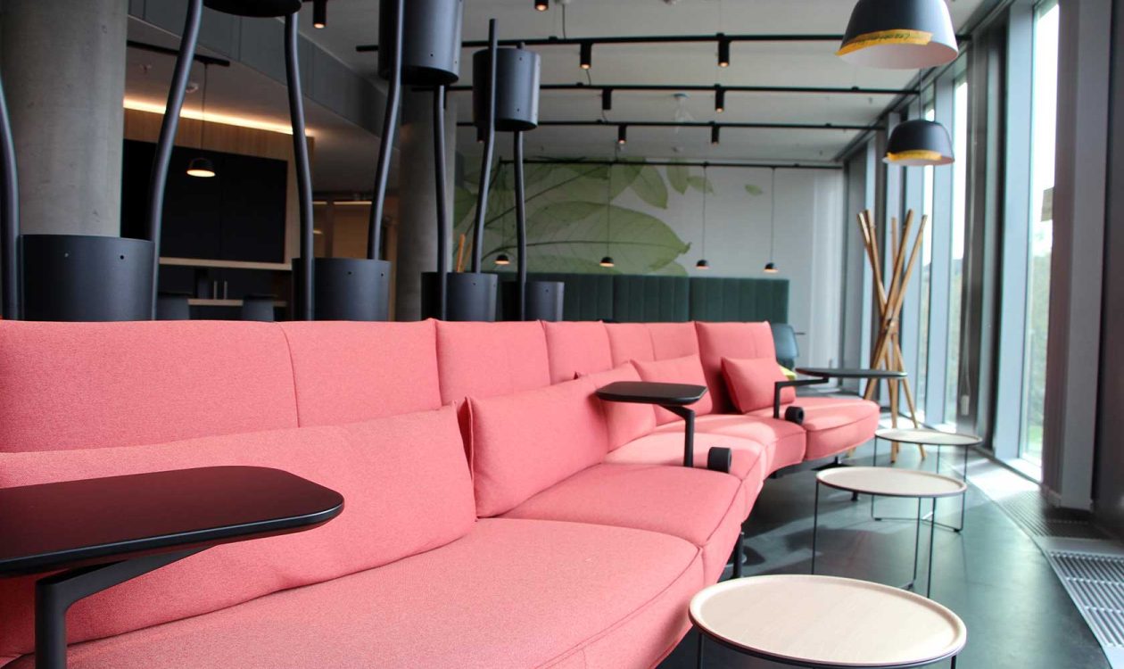 Im neuen Büro in Frankfurt gibt es ein Multi-Space-Konzept mit verschiedenen Formen von Arbeitsplätzen und Ressourcen, die geteilt werden (sogenanntes Desk Sharing). Die Standardarbeitsplätze sind so ausgestattet, dass jede/r Mitarbeitende zwischen den verschiedenen Standardarbeitsplätzen problemlos wechseln kann. Alle Mitarbeitenden erhalten eine persönliche IT-Ausstattung: Laptop, kabellose Tastatur, Maus und Noise-Canceling-Headset und sind damit absolut mobil und können sich frei die Ressource suchen, den die Kolleg*innen für Ihre aktuelle Tätigkeit brauchen – ein absolutes Novum beim Sweco in Frankfurt.