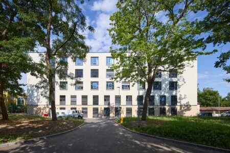Das Heinrich-Braun-Klinikum entstand an seinem heutigen Standort im Zwickauer Stadtteil Marienthal in den 1920er Jahren und wurde seitdem mehrfach umstrukturiert, saniert und erweitert. Heute befinden sich auf dem weitläufigen Gelände neben zahlreichen denkmalgeschützten Gebäuden mehrere neuere Bauten, die in den letzten zwei Jahrzehnten errichtet wurden. Der geplante Neubau befindet sich an der südlichen Grenze des parkähnlichen Klinikgeländes und ergänzt das Gesamtensemble um einen schlichten Baukörper.